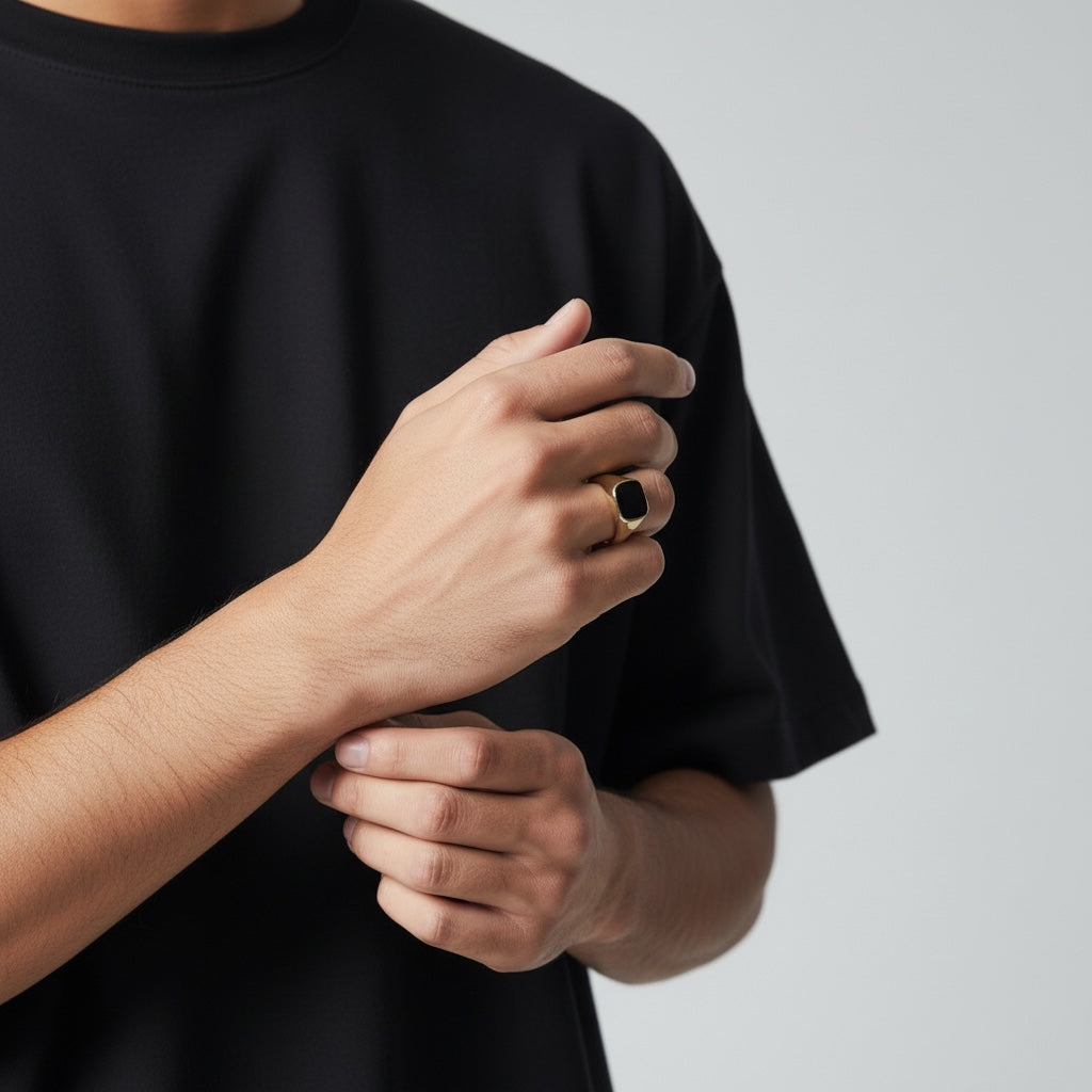 טבעת אטלס אוניקס לגבר זהב צהוב 14 קארט