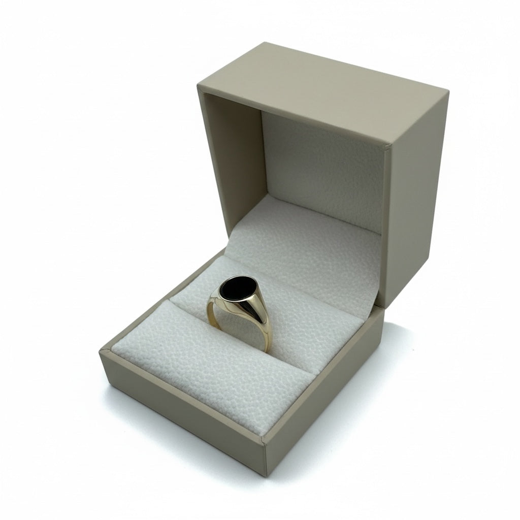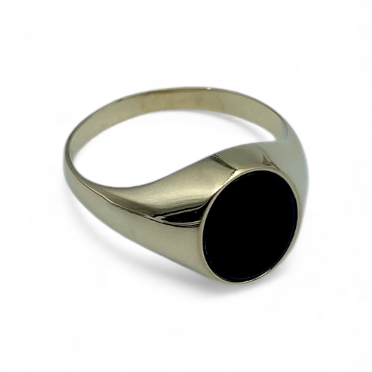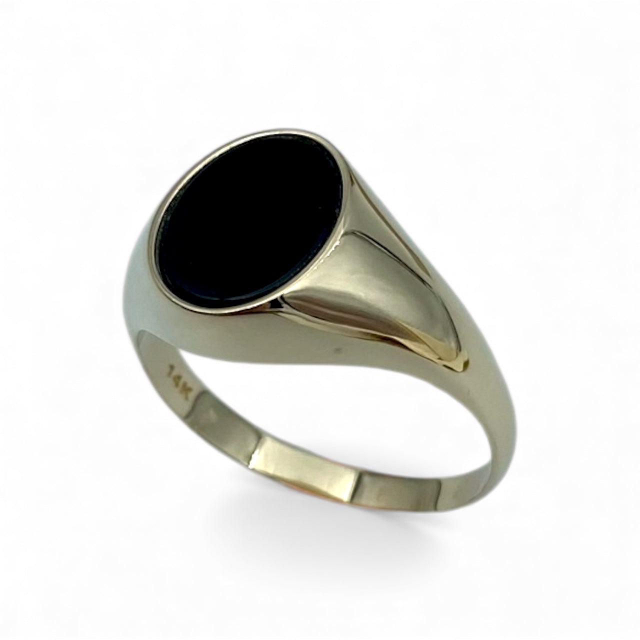 טבעת חותם אלגנטית ומרשימה בעיצוב ולריס ייחודי, עשויה זהב צהוב 14 קראט איכותי בשיבוץ אוניקס שחור . עיצוב מתוחכם ומודרני המשלב קווים נקיים עם נוכחות חזקה, מושלמת לגבר בעל סטייל ייחודי.