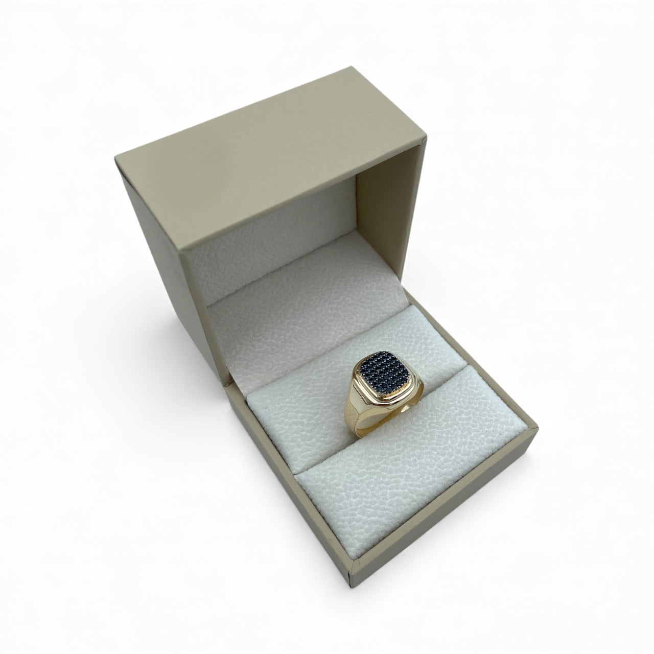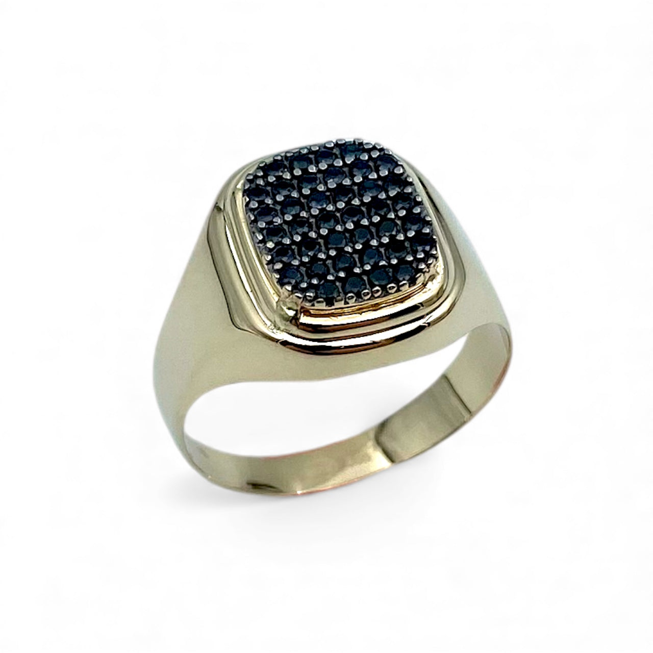 טבעת חותם אוריון לגבר זהב צהוב 14 קארט בשיבוץ זירקונים שחורים
