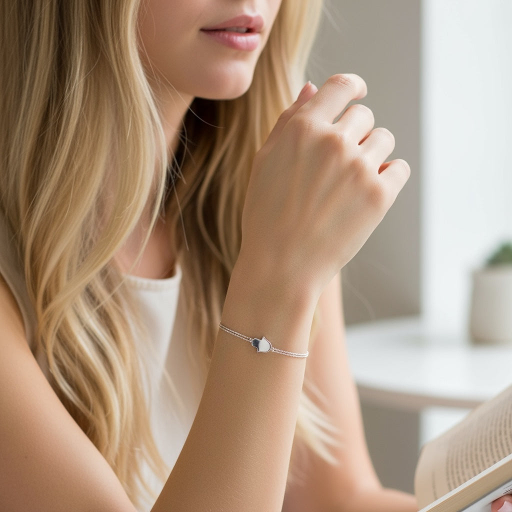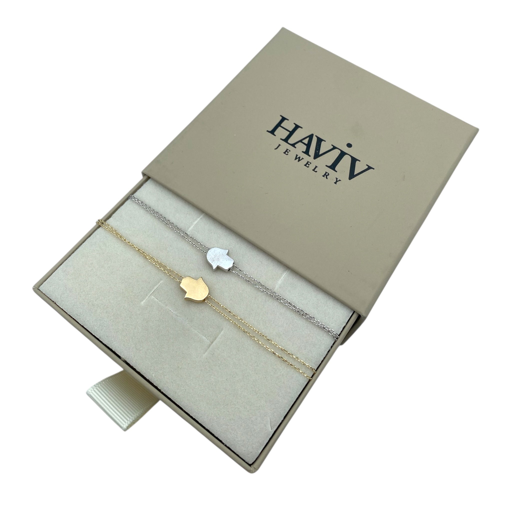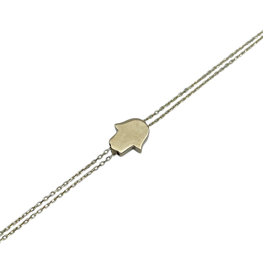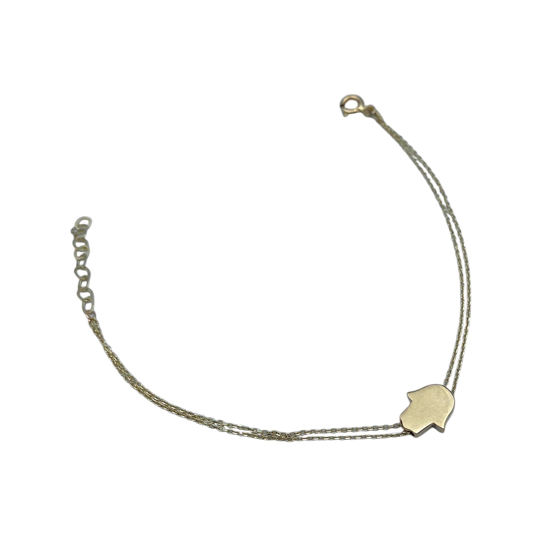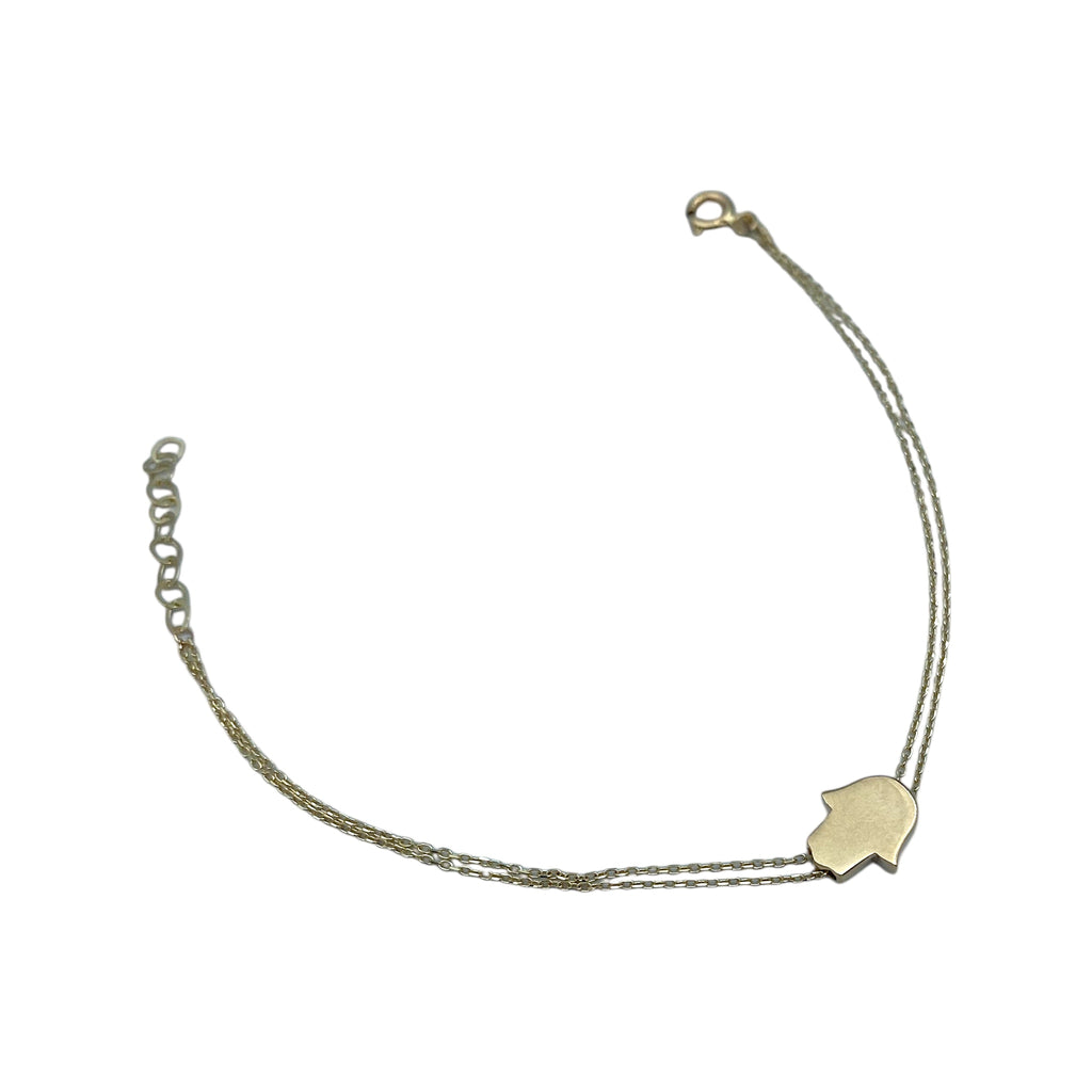 צמיד עדין מזהב 14 קראט עם תליון חמסה בגימור חלק ונקי.