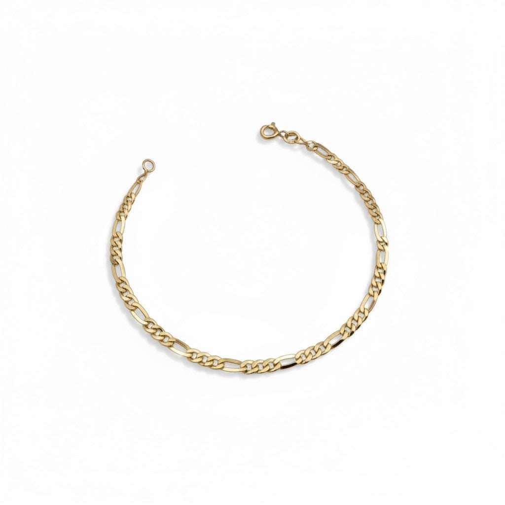 צמיד זהב אלגנטי בעיצוב פיגארו קלאסי, מתאים במיוחד לנשים שאוהבות את הסגנון הוינטג'. שילוב מושלם של עדינות ויוקרה לשימוש יומיומי או לאירועים מיוחדים.