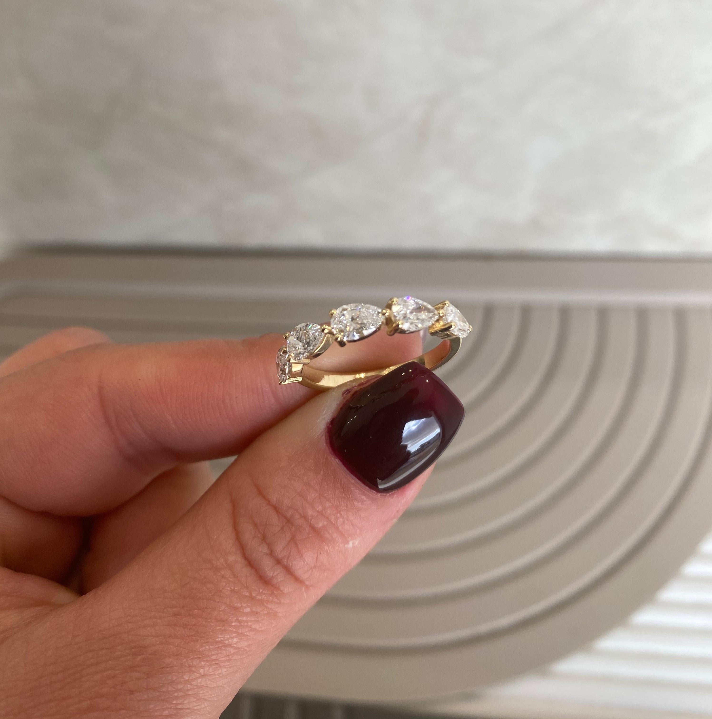 - יהלומים: 5 יהלומי מעבדה בחיתוך טיפה, 1.25 קרט סה"כ